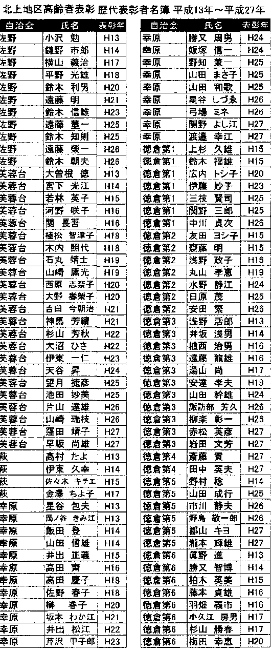 北上地区高齢者表彰