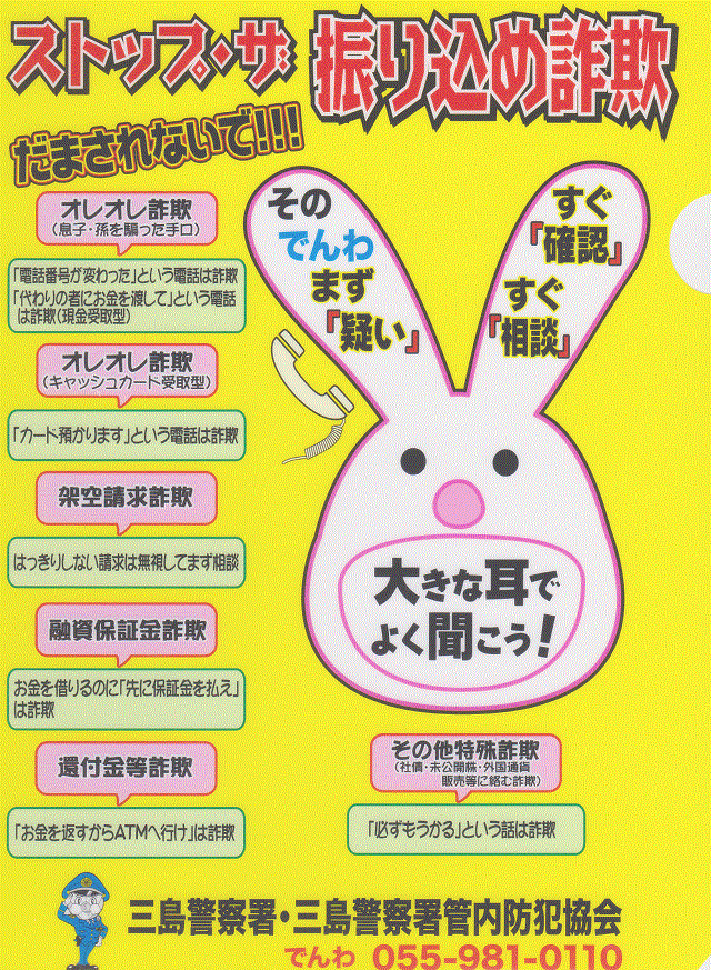 オレオレ詐欺、還付金サギ等